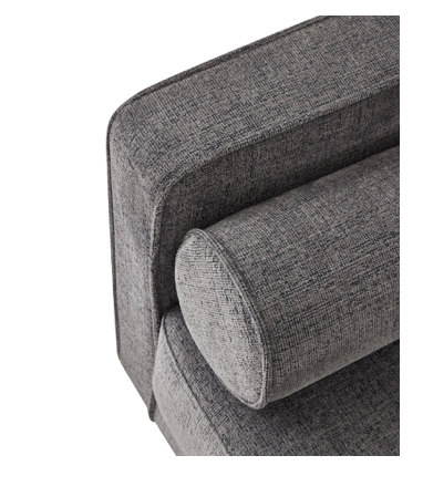 The Hampton 3-Seater Sofa in Charcoal Grey. Combining classic British style with a modern contemporary twist, the Hampton sofa features large & super-padded seat and back cushions with cylindrical side cushions for added comfort. Crafted from a stunning dark grey two-tone fabric which contrasts beautifully to the black & brushed brass legs.