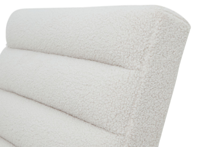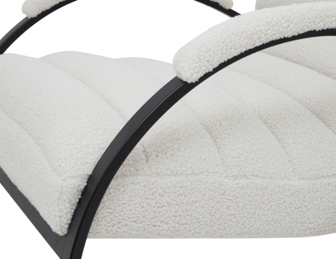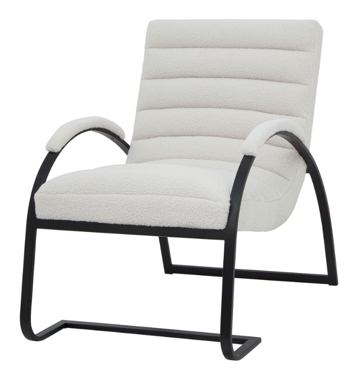 Ribbed Arch Chair in Ivory white. Add some luxury and comfort to any room with this super stylish chair. Featuring a sleek black steel frame with a chunky rib upholstery in a beautifully crafted boucle/teddy fabric. Also featuring padding on the armrests in the same fabric for additional comfort.